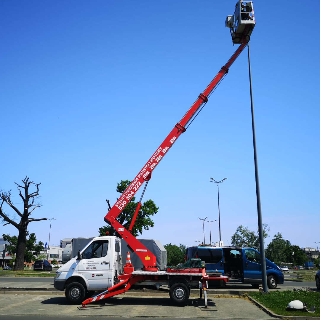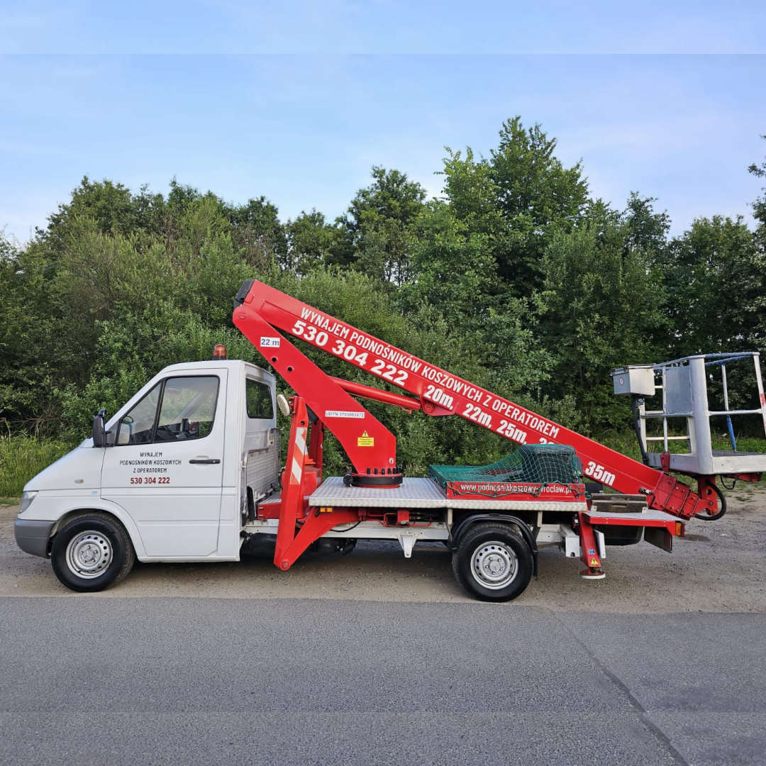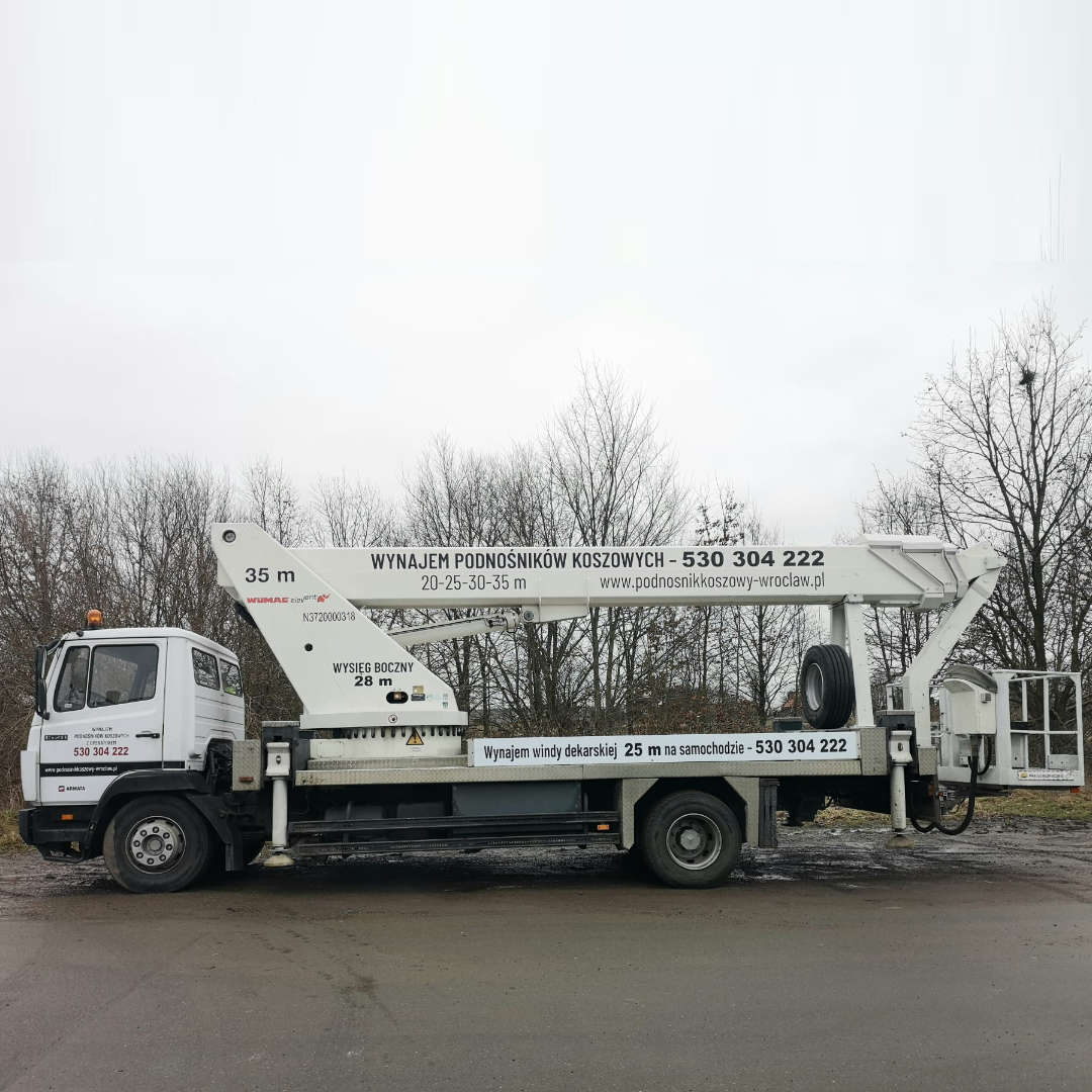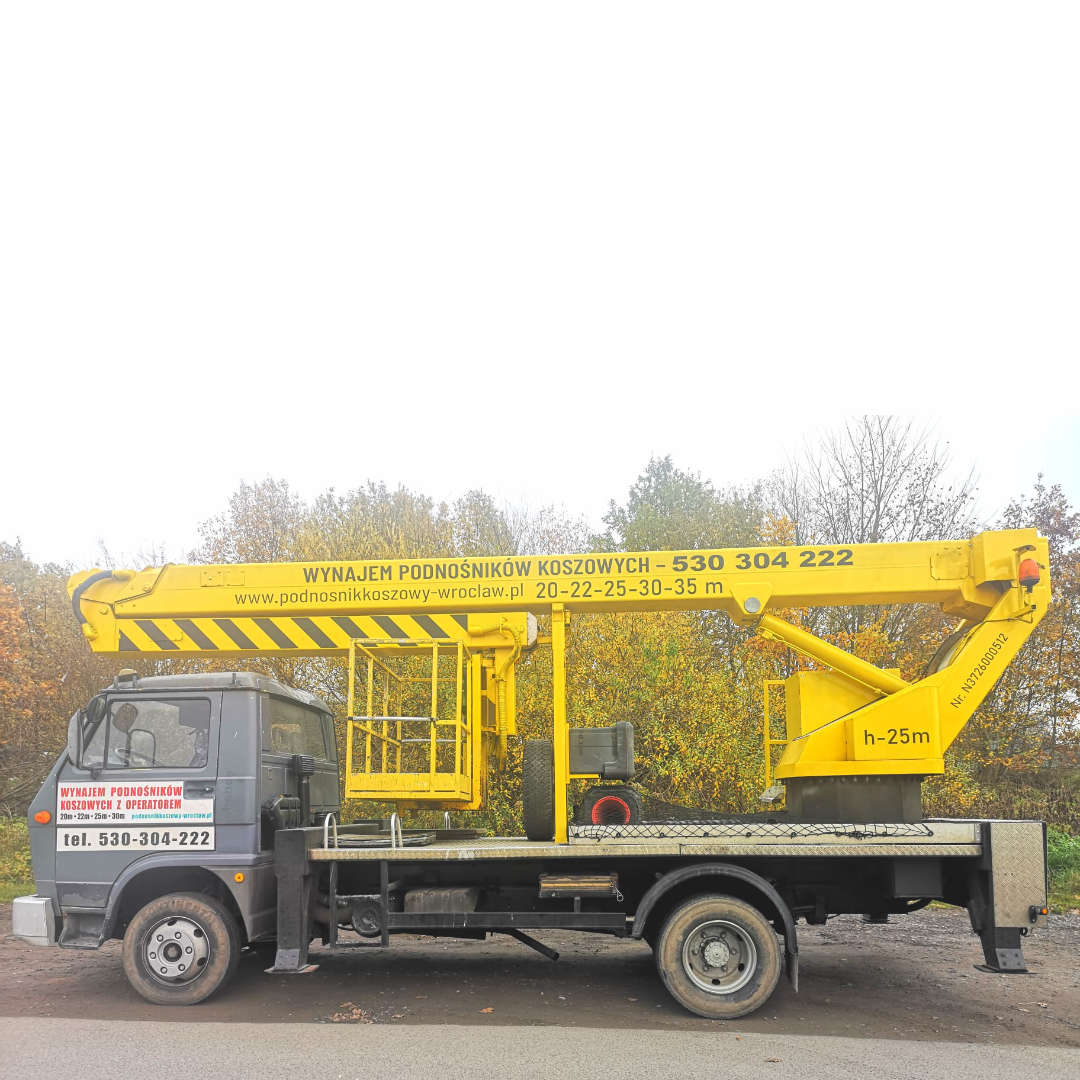 Nasza firma specjalizuje się w wynajmie podnośników koszowych. Dysponujemy parkiem maszynowym składającym się z kilkunastu podnośników o wysokości roboczej od 20 do 45 metrów oraz zasięgu bocznym do 28 metrów. Posiadamy zróżnicowany sprzęt, dopasowany do potrzeb klienta, umożliwiający dotarcie do najbardziej niedostępnych miejsc, co pozwala na redukcję kosztów i czasu. Oferujemy podnośniki koszowe na małych pojazdach do 3,5 t oraz na ciężarówkach powyżej 7 t. Wychodząc naprzeciw oczekiwaniom rynku, nieustannie rozbudowujemy nasz park maszynowy, aby sprostać zapotrzebowaniu na wynajem podnośników koszowych.
