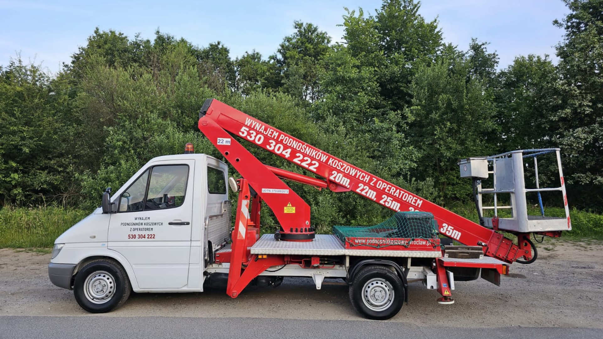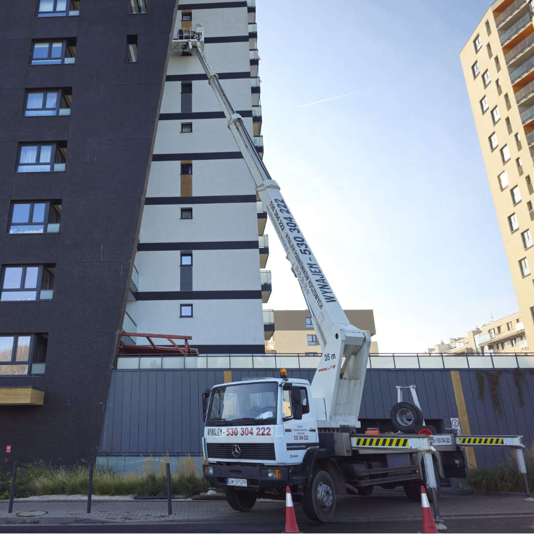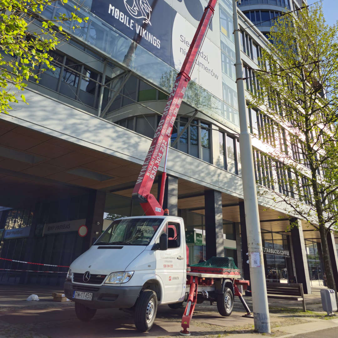 Nasza firma specjalizuje się w wynajmie podnośników koszowych. Dysponujemy parkiem maszynowym składającym się z kilkunastu podnośników o wysokości roboczej od 20 do 45 metrów oraz zasięgu bocznym do 28 metrów. Posiadamy zróżnicowany sprzęt, dopasowany do potrzeb klienta, umożliwiający dotarcie do najbardziej niedostępnych miejsc, co pozwala na redukcję kosztów i czasu. Oferujemy podnośniki koszowe na małych pojazdach do 3,5 t oraz na ciężarówkach powyżej 7 t. Wychodząc naprzeciw oczekiwaniom rynku, nieustannie rozbudowujemy nasz park maszynowy, aby sprostać zapotrzebowaniu na wynajem podnośników koszowych.